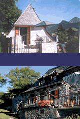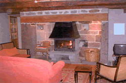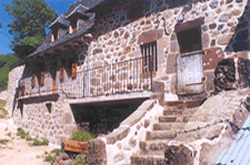 The house is delightful, two typical Auvergnat homes built on a hillside and joined together to make one. There is a cellar/workshop at ground level, where wood for the log fire is kept. Above this, approached by large stone steps and a narrow balcony is the door to the kitchen. This one big room was where the family ate, lived and slept, and it still has all the charm of the old days with its wooden beams, and great fireplace with seats inside it where you can sit and toast your toes. Sometimes we cook over the fire, and there are the old implements still hanging in the chimney. In this room there is also the original long table and benches made when the house was built, easy chairs and cupboards and a well-equipped kitchen area with cooker, sink unit and fridge, dishwasher and a washing machine.