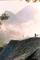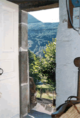 The main sitting room has a large wood-burning stove [which also ducts warm air upstairs if it is needed], a stereo system, television and VCR. There is also a second shower room on this floor. Upstairs there is one large bedroom, full of light, and an en-suite WC. Off this room there is a terrace with a marvellous view over the mountains, a gas fired barbecue, table and chairs.